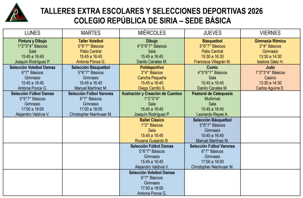 Reciban un cordial saludo de parte del equipo de Talleres Siria 2026.